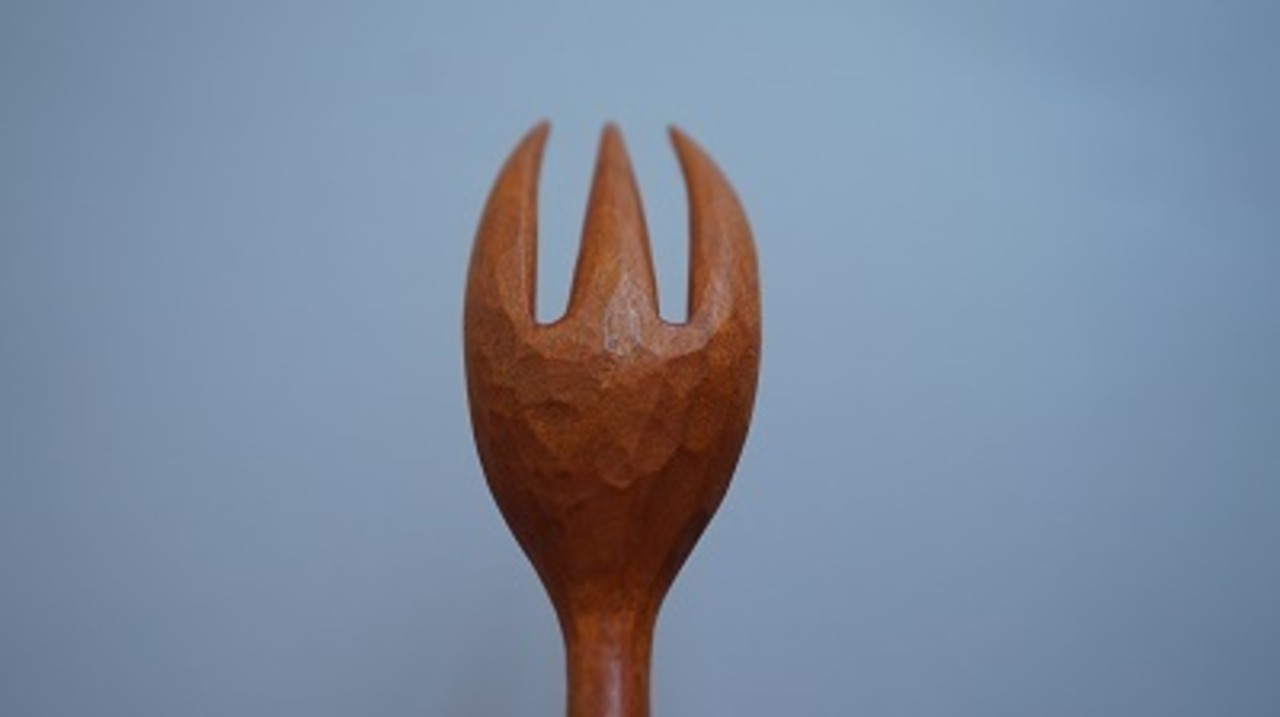 三宅木工房さんの木のフォークです。